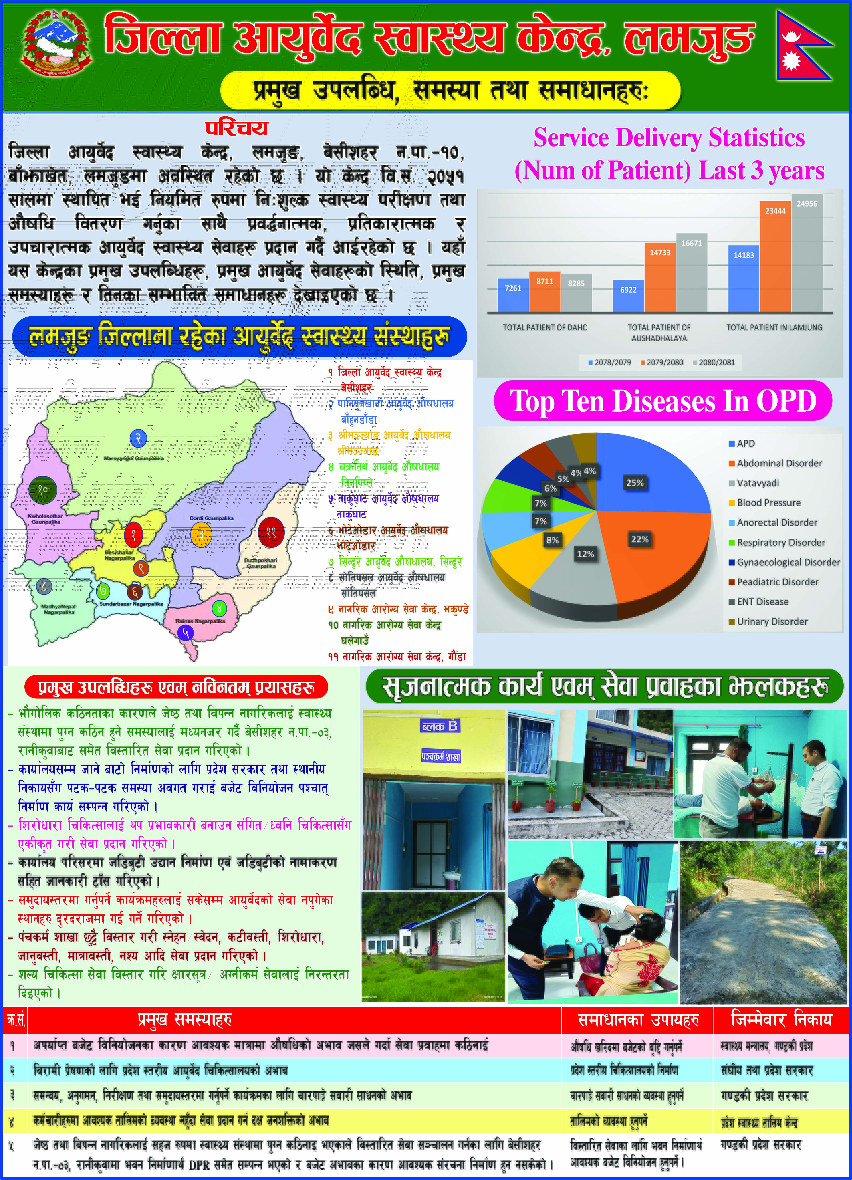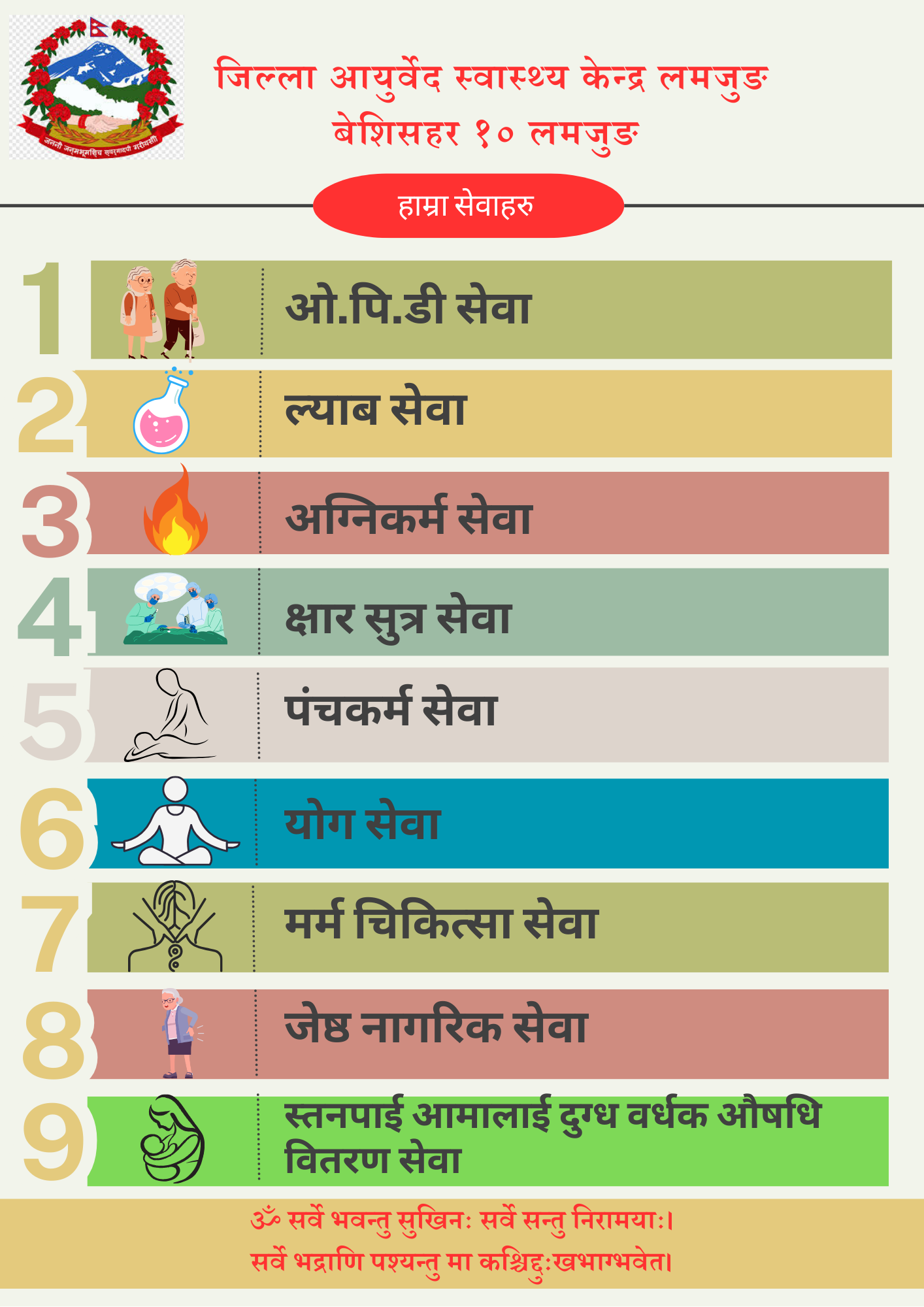 वेशिसहर नगरपालिका वडा नं. १० बाँझाखेतमा अवस्थित यस जिल्ला आयुर्वेद स्वास्थ्य केन्द्र लमजुङ स्वास्थ्य तथा जनसंख्या मन्त्रालय गण्डकी प्रदेशको मातहतमा रहेको कार्यालय हो ।