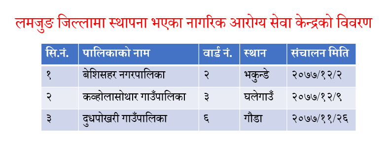 नागरिक आरोग्य सेवा केन्द्रको विवरण